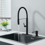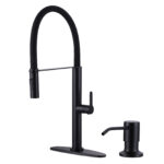 21.2 in. Single Handle Pull Down Sprayer Kitchen Faucet with Soap Dispenser and 360 Degree Spout Swivel in Matte Black