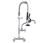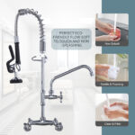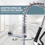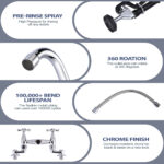 Our commercial faucet design is innovative and can easily control the flow of water through a handle, making it suitable for cleaning dishes and other cooking tools. The color of the connecting pipeline is chrome, combined with the water outlet function of the nozzle, making every cleaning of tableware more convenient. This equipment is equipped with pipeline connectors in addition to the main components for easy installation or maintenance.