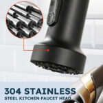 Durable Stainless Steel Construction Our pull down faucet head is made of premium rust-resistant 304 stainless steel preventing rust from daily use featuring an industry-leading oil rubbed bronze finish that enhances its scratch resistance and durability, while maintaining a long-lasting glossy appearance.