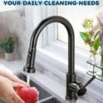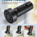The sink faucet head with 3 modes: stream, spray, and high pressure sweep modes. Stream for gentle cleaning; Spray for daily rinsing; and the powerful dual sweep can quickly strip food residue from plates. 3 different modes for your daily cleaning needs. Attention: Please note that this faucet head is suitable for most faucets and not for all faucets (such as curved shape faucet)!
