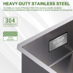 This sink offers the durability of stainless steel in a fashionably functional design. Tight corners and a flat bottom provide more space inside the sink bowl for stacking and washing dishes. Brushed surfaces make our kitchen sinks more practical, scratch-resistant, and attractive for a variety of countertops. Manufactured with 16-Gauge, premium T304 stainless steel construction, aim for long-lasting use The stunning contemporary shape makes a statement in any home.