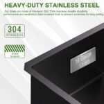 This sink offers the durability of stainless steel in a fashionably functional design. Tight corners and a flat bottom provide more space inside the sink bowl for stacking and washing dishes. Brushed surfaces make our kitchen sinks more practical, scratch-resistant, and attractive for a variety of countertops. Manufactured with 16-Gauge, premium T304 stainless steel construction, aim for long-lasting use. The stunning contemporary shape makes a statement in any home.
