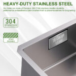 This sink offers the durability of stainless steel in a fashionably functional design. Tight corners and a flat bottom provide more space inside the sink bowl for stacking and washing dishes. Brushed surfaces make our kitchen sinks more practical, scratch-resistant, and attractive for a variety of countertops. Manufactured with 16-Gauge, premium T304 stainless steel construction, aim for long-lasting use The stunning contemporary shape makes a statement in any home.