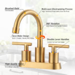 4 in. Centerset Modern Double-Handle Bathroom Sink Faucet, Basin Faucet with Pop-Up Drain in Brushed Gold