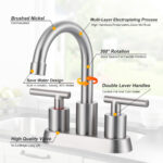 Double Handle 3-hole Bathroom Sink Faucet is designed with modern fashion style combined with traditional style for a beautiful appearance, providing a coordinated new bathroom fashion for lovers of traditional and modern styles, matching any style of bathroom, and is an excellent choice for use in upgrading your bathroom. The sink faucet features a multi-layer plated finish that effectively prevents corrosion, scratches and rust during daily use. The faucet body is made of high-quality metal construction for durability, and the double handle design allows you to easily adjust the water flow and temperature, making it easy to operate and meet your various needs. This bathroom sink faucet set includes a pop-up drain for you to drain or store the water in the sink.