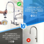 Upgrade your kitchen cleanup with this pre-rinse sprayer! It works seamlessly with commercial faucets having 7/8″ 20 UNEF threads, making it a perfect addition to your kitchen setup.With a hold-down ring, it frees up your hands, so you can spray effortlessly while washing dishes or filling pots. You have got two outlet hole options??6 holes for gentle rinsing and 8 holes for more powerful cleaning that match different tasks.Disassembling and cleaning it is a cinch, keeping it in top shape. Plus, it is super versatile, ideal for cleaning dishes, washing produce, and filling containers. Make kitchen chores easier with this efficient sprayer!