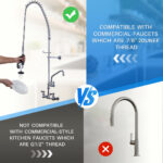 Upgrade your kitchen cleanup with this pre-rinse sprayer! It works seamlessly with commercial faucets having 7/8″ 20 UNEF threads, making it a perfect addition to your kitchen setup.With a hold-down ring, it frees up your hands, so you can spray effortlessly while washing dishes or filling pots. You have got two outlet hole options??6 holes for gentle rinsing and 8 holes for more powerful cleaning that match different tasks.Disassembling and cleaning it is a cinch, keeping it in top shape. Plus, it is super versatile, ideal for cleaning dishes, washing produce, and filling containers. Make kitchen chores easier with this efficient sprayer!