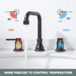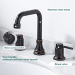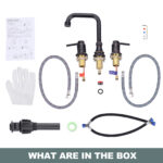 Modern appearance design, clean and simple lines, can fit with most home decoration style, add an elegant to your kitchen. The double handle design makes it more convenient for you to control the water flow and temperature. The faucet can be rotated 360, leaving more space for your countertop. Solid brass body material is better than other metal materials, high stability, to ensure long-lasting use. The set includes a pop-up drainer, no need to buy extra, saving you time and money.