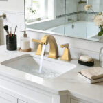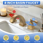 Be the first to review “8 in. Widespread Deck Mounted Double-Handle Bathroom Faucet with Pop-up Drain Assembly in Brushed Gold”