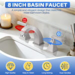 The 8-inch Widespread Bathroom Sink Faucet is designed with a combination of smooth lines of modern style to add a sophisticated minimalist modern element to your bathroom, using this faucet can give your bathroom a new look. The body of our this bathroom sink faucet is made of high quality metal material, effectively preventing the hazards of lead overload on human health, aiming to maintain the health of you and your family, and at the same time bring you a high-quality performance experience. High-quality materials make up this perfect bathroom faucet, the internal brass valve core is durable and ensures that there is no risk of water leakage, and the high-quality aerator gives you a soft and comfortable water flow without splashing. Adjustable spacing allows you to adjust the distance of the mounting holes between 4-16 inches according to your needs, come and upgrade your bathroom with this bathroom sink faucet!