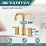 Our 8 in. bathroom basin faucet has smooth lines and a sophisticated look, adding a touch of modern elegance to your bathroom. Crafted from sturdy, high-quality stainless steel material, it offers premium performance that resists corrosion and rust for years to come. The sleek design and superior performance of the Wide 8 in. Basin Faucet make it ideal for upgrading your bathroom, complementing any style of bathroom. The dual handle design allows for precise temperature and flow control, the high arc wide design and 360?? swivel spout provide plenty of maneuverable space, and the spout is equipped with a high quality aerator to effectively minimize splashing and give you the most comfortable water flow. With the pop-up drain to help you quickly drain off the sewage in the sink.