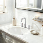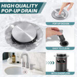 Our 8 in. bathroom basin faucet has smooth lines and a sophisticated look, adding a touch of modern elegance to your bathroom. Crafted from sturdy, high-quality stainless steel material, it offers premium performance that resists corrosion and rust for years to come. The sleek design and superior performance of the Wide 8 in. Basin Faucet make it ideal for upgrading your bathroom, complementing any style of bathroom. The dual handle design allows for precise temperature and flow control, the high arc wide design and 360?? swivel spout provide plenty of maneuverable space, and the spout is equipped with a high quality aerator to effectively minimize splashing and give you the most comfortable water flow. With the pop-up drain to help you quickly drain off the sewage in the sink.