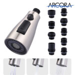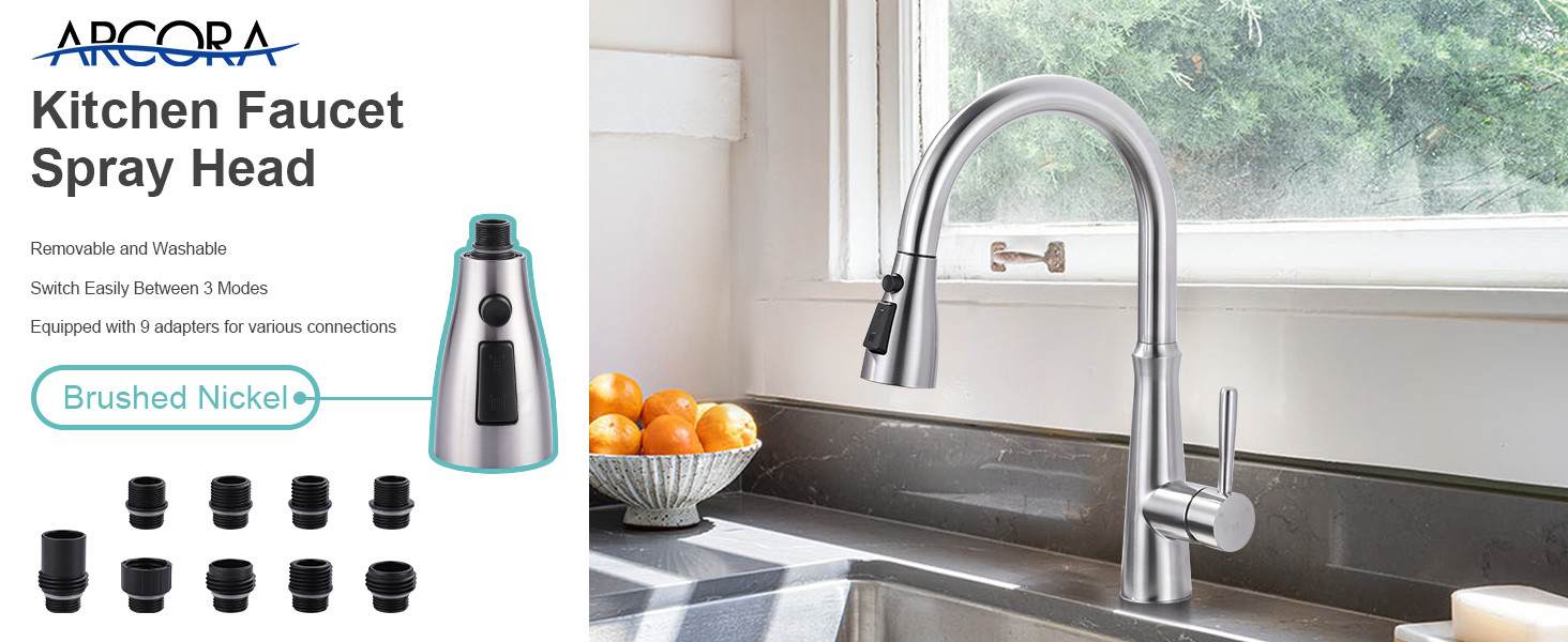 ARCORA 3-Function Brush Nickel Kitchen Faucet Spray Head Replacement with 9 Adapters