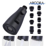 ARCORA 3-Function Matte Black Kitchen Faucet Spray Head Replacement with 9 Adapters