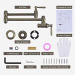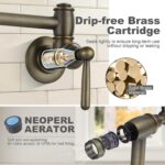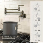 - The antique bronze pot filler faucet with 21 inch foldable swing arm design and retracts when not in use.