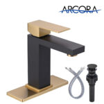 ARCORA Modern Black and Gold Bathroom Sink Faucet with Drain for 1 Or 3 Hole
