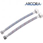 Universal Faucet Hose – Feature 3/8” Female compression and 1/2” brass nut. Compatible with most Standard Size faucets. Supply for hot & cold water.