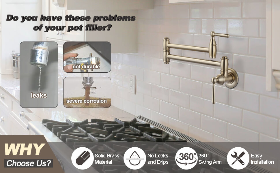 • Care About Your Health: Eco-friendly solid brass pot filler, complied with lead-free regulation, put your family’s health first.NOTICE: this pot filler faucet is designed for delivering cold water.