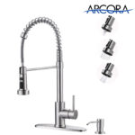ARCORA Brushed Nickel Commercial Pull Down Kitchen Sink Faucet with Soap Dispenser