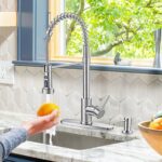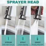 The brushed nickel pull down kitchen faucet with 360 degree swivel makes various kitchen space tasks easier and more convenient.