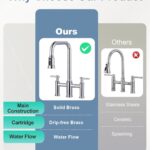 Solid Brass Construction: The heavy-duty kitchen faucets main body is composed of brass, stainless steel arc spout, and ABS kitchen faucet head. Brass kitchen sink faucet features a chrome finish that resists rust, corrosion, and leaks, and is easy to maintain and clean