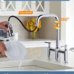 Flexible Design: High arched 360 degree swivel spout is large and comfortable to reach around the sink, giving your kitchen sink a full range of washes. High arc 360° rotating faucet is also perfect for double sink. Bridge faucet with smart double lever handle for easy control of hot&cold water temperature and flow