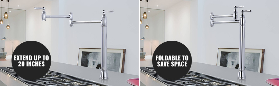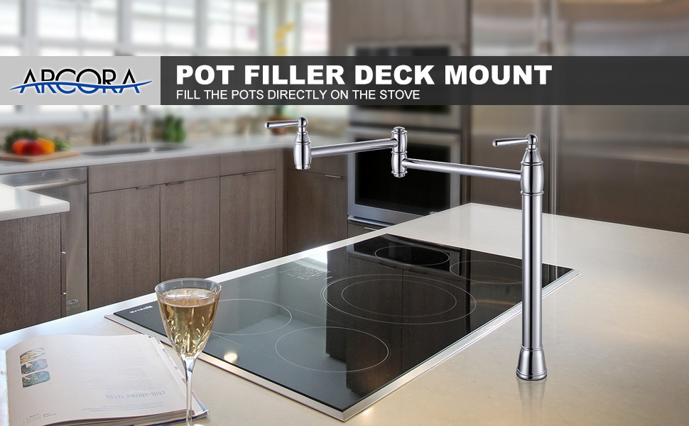 ARCORA Deck Mount Chrome Pot Filler Faucet Over Stove with Stretchable Double Joint Swing Arms