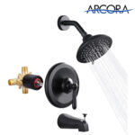 ARCORA Matte Black Wall Mounted Shower System with 6-Inch Rain Shower Head and Tub Spout