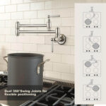 Installing a pot filler faucet over stove requires careful consideration of plumbing and spatial layout. It needs to be positioned at an appropriate height above the stove to allow for easy access and filling of pots without interfering with the cooking process. The faucet is equipped with a swinging arm that can be extended and adjusted, providing flexibility in directing the water flow to different areas on the stovetop.