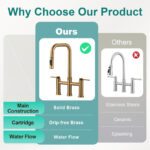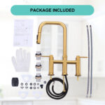 The body of this bridge kitchen sink faucet is made of sturdy and durable brass material, corrosion and rust resistant, durable and ideal for you to use to upgrade your kitchen. Our sink 3-hole kitchen faucet with pull-down sprayer bubbler can effectively filter out impurities and reduce splashing, and the sprayer has 3 spout modes to meet your daily water needs. It is not only a perfect partner for the classic design of a farmhouse or cottage kitchen, but also an ideal addition to a modern cottage kitchen. With two separate taps for hot and cold water, this bridge faucet can easily give you just the right water temperature, making it both practical and decorative for your house. It’s also great for kitchen sinks, RV sinks, laundry rooms, and more.