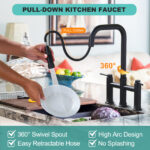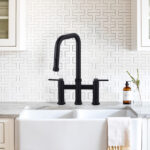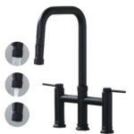 Be the first to review “Brass Double Handle Deck Mounted Bridge Kitchen Faucet with Pull-Down Spray Head in Matte Black”