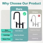 The body of this bridge kitchen sink faucet is made of sturdy and durable brass material, corrosion and rust resistant, durable and ideal for you to use to upgrade your kitchen. Our sink 3-hole kitchen faucet with pull-down sprayer bubbler can effectively filter out impurities and reduce splashing, and the sprayer has 3 spout modes to meet your daily water needs. It is not only a perfect partner for the classic design of a farmhouse or cottage kitchen, but also an ideal addition to a modern cottage kitchen. With two separate taps for hot and cold water, this bridge faucet can easily give you just the right water temperature, making it both practical and decorative for your house. It’s also great for kitchen sinks, RV sinks, laundry rooms, and more.