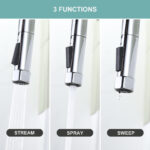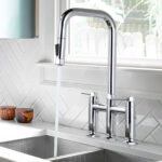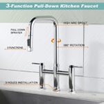 The body of this bridge kitchen sink faucet is made of sturdy and durable brass material, corrosion and rust resistant, durable and ideal for you to use to upgrade your kitchen. Our sink 3-hole kitchen faucet with pull-down sprayer bubbler can effectively filter out impurities and reduce splashing, and the sprayer has 3-spout modes to meet your daily water needs. It is not only a perfect partner for the classic design of a farmhouse or cottage kitchen, but also an ideal addition to a modern cottage kitchen. With 2-separate taps for hot and cold water, this bridge faucet can easily give you just the right water temperature, making it both practical and decorative for your house. It’s also great for kitchen sinks, RV sinks, laundry rooms, and more.