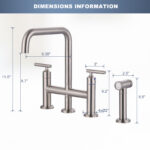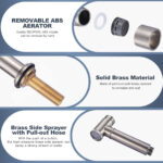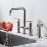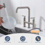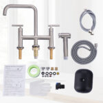 The 8 in. heavy-duty bridge kitchen sink faucet features a simple-to-operate, 2-handle design for precise control of water temperature and flow to maximize and simplify your kitchen cleaning. Constructed from premium solid brass and stainless steel materials for advanced resistance to rust, corrosion, and penetration, the lead-free material ensures safe water quality, putting you and your family’s health first. The bridge faucet is equipped with side sprayer with pull-out hose in the same color, just press the button, the high-pressure brass side sprayer sprays a powerful stream of water for cleaning dishes and corners, the extra-long pull-out hose provides greater flexibility and maneuverability, and the nozzle can be automatically retracted by the action of gravity ball, which will bring you a comfortable using experience. Modern brass kitchen sink faucet has a delicate and elegant appearance, revealing a hint of modern flavor, it is the finishing touch to any kitchen, if you want to upgrade your kitchen, this bridge sink faucet will bring you unexpected results.