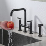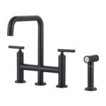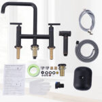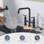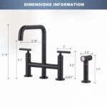 The 8 in. heavy-duty bridge kitchen sink faucet features a simple-to-operate, 2-handle design for precise control of water temperature and flow to maximize and simplify your kitchen cleaning. Constructed from premium solid brass and stainless steel materials for advanced resistance to rust, corrosion, and penetration, the lead-free material ensures safe water quality, putting you and your family’s health first. The bridge faucet is equipped with side sprayer with pull-out hose in the same color, just press the button, the high-pressure brass side sprayer sprays a powerful stream of water for cleaning dishes and corners, the extra-long pull-out hose provides greater flexibility and maneuverability, and the nozzle can be automatically retracted by the action of gravity ball, which will bring you a comfortable using experience. Modern brass kitchen sink faucet has a delicate and elegant appearance, revealing a hint of modern flavor, it is the finishing touch to any kitchen, if you want to upgrade your kitchen, this bridge sink faucet will bring you unexpected results.