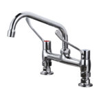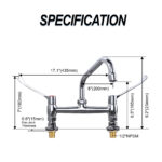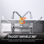 This long handle commercial sink faucet is made of high quality solid brass material and shiny chrome-plated material with good corrosion resistance to ensure perfect quality and long service life, lead-free material allows you to enjoy a healthy and practical sink faucet that always puts you and your family’s health in the first place. Extra long double handles design can easily control control the water temperature and flow, clear and obvious hot and cold markings are easy to operate and use, high arc 360 degree swivel spout can provide all-around cleaning access, very suitable for single or double sinks. The kitchen sink faucet spout is equipped with a high quality bubbler, the water is soft and non-splashing, bringing you a comfortable using experience. With simple and elegant style, smooth lines and curves, this pantry and worktop faucet is suitable for a variety of indoor and outdoor places, such as kitchen cubicle sinks, restaurants, laundries, farmhouses, gardens, pubs, food trucks and so on.