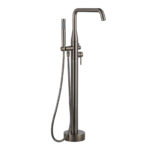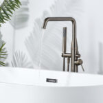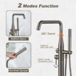 From its durable, long-lasting construction to the contemporary and decor-complementing design, this freestanding bathtub faucet belongs to your bathroom. Faucet made of Solid brass, constructed from the high quality solid brass and black finished in corrosion and rust-resistant for durability and reliability. The spout with 360?? Swivel can adjust the proper angle to fill the water easily and offer more room for bathing activities.