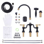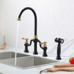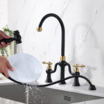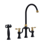 Be the first to review “Double-Handle High-Arc Deck Mounted Bridge Kitchen Faucet in Black and Gold”