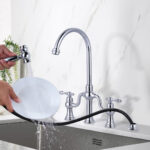 Be the first to review “Double-Handle High-Arc Deck Mounted Bridge Kitchen Faucet in Chrome”