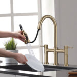 Be the first to review “Double Handle Pull Out Sprayer Kitchen 3 Hole Included Supply Lines in Brushed Gold”