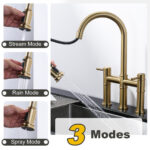 Double Handle Pull Out Sprayer Kitchen 3 Hole Included Supply Lines in Brushed Gold