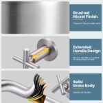 Wall-mounted design frees up more space for use and makes cleaning the basin more convenient. The clean and smooth lines of the design can be perfectly matched with your installation environment, equipped with a splash-proof water Aerator, soft water flow, no splashing, but also can save water, very environmentally friendly. Double cross handle can be easily used to control the temperature and water flow. Solid brass construction and ceramic cartridge provide even better performance.