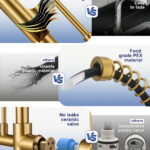 Combining the benefits of a commercial pull down faucet with the convenience of an integrated drinking faucet, the 3-in-1 design simplifies the look of your kitchen while allowing you to enjoy the functionality of your faucet. Dual handle design allows you to easily control the water temperature and flow rate, giving you a comfortable and fast experience. High quality lead-free faucet using high quality solid brass material, direct drinking faucet strong, rust, lead-free, to bring you and your family safe and healthy drinking water. The 360 rotating design reaches every corner of the sink for easy access to water, while the sprayer and vent allow you to go from washing dishes to filling your POTS and pans in one swoop. With the perfect combination of practicality and beauty, the versatile design of this faucet will take your kitchen hardware to the next level with excellent ergonomics and unmatched efficiency.