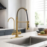 Be the first to review “Double Handles Solid Brass Pull Down Sprayer Kitchen Faucet with Drinking Water Filter in Brushed Gold”