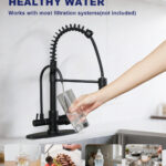 Combining the benefits of a commercial pull down faucet with the convenience of an integrated drinking faucet, the 3-in-1 design simplifies the look of your kitchen while allowing you to enjoy the functionality of your faucet. Dual handle design allows you to easily control the water temperature and flow rate, giving you a comfortable and fast experience. High quality lead-free faucet using high quality solid brass material, direct drinking faucet strong, rust, lead-free, to bring you and your family safe and healthy drinking water. The 360 rotating design reaches every corner of the sink for easy access to water, while the sprayer and vent allow you to go from washing dishes to filling your POTS and pans in one swoop. With the perfect combination of practicality and beauty, the versatile design of this faucet will take your kitchen hardware to the next level with excellent ergonomics and unmatched efficiency.