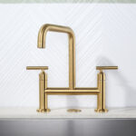 Modern Double Handle High Arc Solid Brass Bridge Kitchen Faucet in Brushed Gold