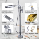 High quality bathtub filler body is made of high quality solid brass, the sturdy brass construction prevents corrosion and makes the waterfall bathtub faucet durable. The single handle design allows for easy temperature and flow control, and the switching valve knob allows you to switch the water flow to the bathtub spout or handheld shower, very convenient for our bathing/daily use. The bathtub filler is floor mounted, designed with a brand new base with 4 bolts to tighten to install the bathtub filler, this excellent design will make our freestanding bathtub filler more stable than others, it won’t wobble when the bathtub filler is working like other products. The waterfall spout delivers a steady and comfortable flow of water, which effectively prevents splashing and brings you the ultimate bathing experience.