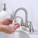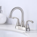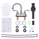 Be the first to review “4 Centerset Double Handle High Arc Bathroom Faucet with Drain in Brushed Nickel”