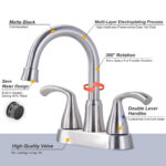 The bathroom faucet is fabricated of heavy-duty and high grade stainless steel with matte black finish. So, it has a exceptional accomplishment of anti erosion and anti scratch. The ring is metal made and the valve is ceramic made to make sure the utility sturdiness and continued lifetime.