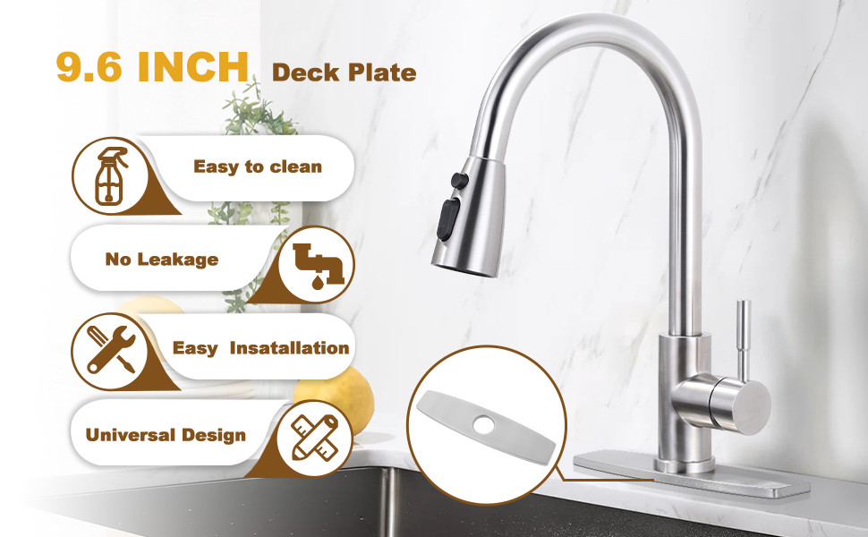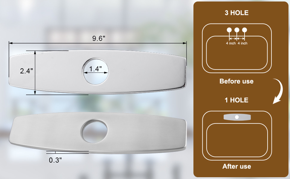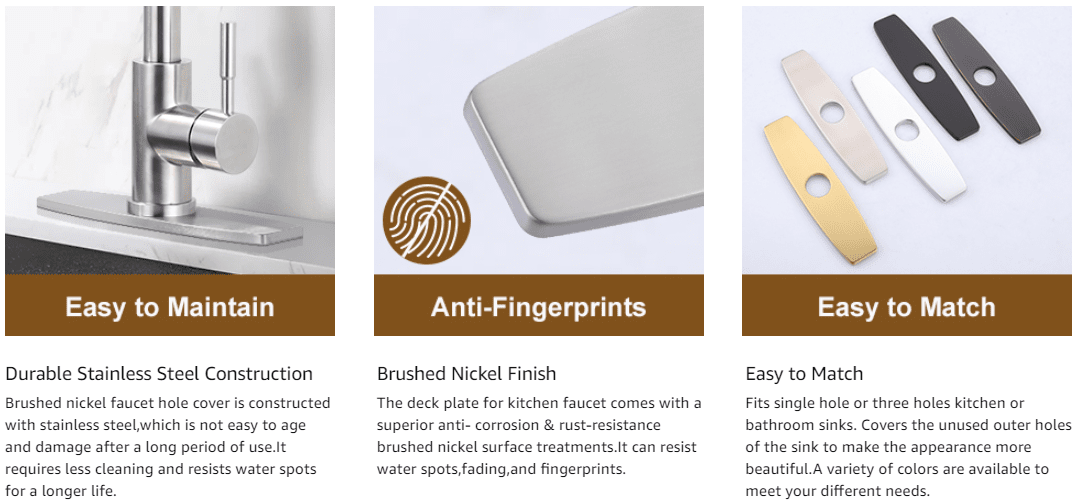 ARCORA 9.6 Inch Brushed Nickel Faucet Hole Cover Stainless Steel Deck Plate for 1 or 3 Hole